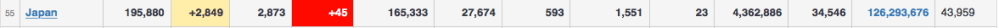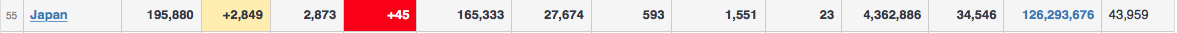 143. Canada – 2,665 (so, our incidence is 1277x higher than Taiwan; 75x higher