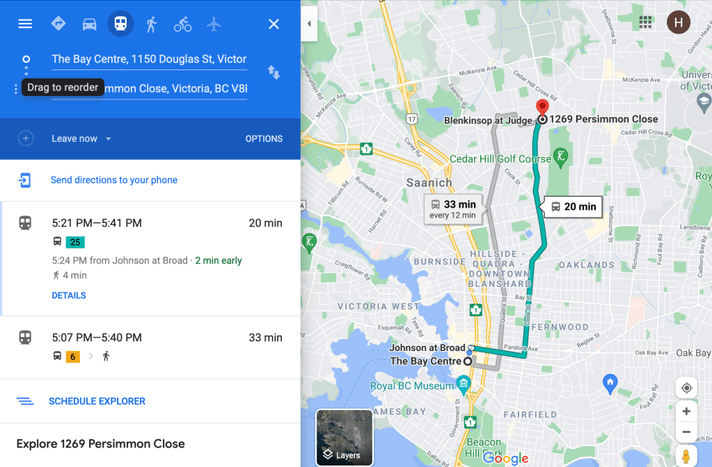 There is also good bus service, to very close by. Here is a map of bus service from Downtown, as an example…